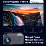 یکی از مشکلاتی که اغلب کاربران ویدئو پروژکتورها با آن مواجه میشوند، تنظیم زاویه تصویر است. ویدئو پروژکتور هوشمند TSCOVISION مدل TVI 132 با پشتیبانی از تصحیح زاویه عمودی ±15 درجه و همچنین قابلیت تصحیح گوشههای تصویر (Corner Keystone)، به شما این امکان را میدهد که حتی در صورت نصب دستگاه در زاویهای نامتعارف، تصویر کاملاً متقارن و منظم باشد. این ویژگی، نصب دستگاه را در محیطهای مختلف سادهتر میکند. یکی از نقاط قوت ویدئو پروژکتور هوشمند تسکوویژن TVI 132، امکان تنظیم فاصله پروجکشن در بازه 1.8 تا 6.6 متر است. این ویژگی به کاربران اجازه میدهد که بسته به اندازه اتاق یا محل استفاده، فاصله ایدهآل بین ویدئو پروژکتور هوشمند و پرده نمایش را تعیین کنند. انعطافپذیری در تنظیم فاصله، این دستگاه را برای استفاده در محیطهای کوچک مانند اتاقهای خانگی یا بزرگ مانند سالنهای کنفرانس مناسب میسازد. همچنین، این قابلیت تضمین میکند که حتی در فضاهای محدود، بتوان تصویری بزرگ و باکیفیت داشت. این دستگاه با پشتیبانی از نسبت تصویر 16:9، تجربهای واقعی و جذاب از تماشای محتوای ویدئویی را فراهم میکند. این فرمت استاندارد که در بسیاری از فیلمها، برنامههای تلویزیونی و بازیهای ویدئویی استفاده میشود، تصاویری عریض و سینمایی را به نمایش میگذارد. نسبت تصویر 16:9 نهتنها به بهبود تجربه تماشای فیلم کمک میکند، بلکه برای ارائههای حرفهای و آموزشی نیز انتخابی مناسب است. ویدئو پروژکتور هوشمند تسکوویژن TVI 132 با نسبت پرتاب 1.1:25، قابلیت تولید تصاویر بزرگ در فاصلهای کوتاه را فراهم میکند.این ویژگی به کاربران اجازه میدهد تا حتی در اتاقهای کوچک، تصاویری با اندازه قابل توجه و کیفیت بالا داشته باشند.به طور مثال، در فاصلهای حدود 2 متر، میتوانید تصویری به عرض بیش از 1.6 متر داشته باشید.این قابلیت برای محیطهای خانگی، کلاسهای درس یا دفاتر کاری بسیار کاربردی است و نیاز به فضای زیادی برای نصب دستگاه ندارد.